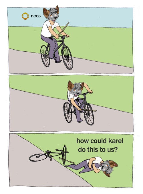If ncr failed, neos will fail either. it's naive someone want karel lose everything, meanwhile dev team can continue neos freely and have a bright future.