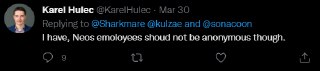 Karel has beyond just this one tweet stated that employees should not be anonymous public facingly and should be forced to use their full legal names in public facing communication with the community, which i heavily disagree with -